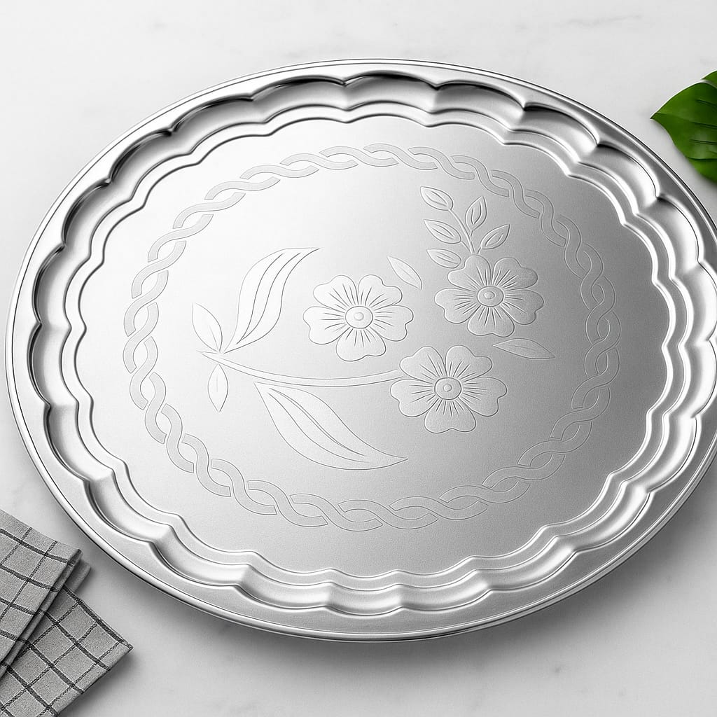 حجم مثالي: بقطر 60 سم، توفر الصينية مساحة واسعة لتقديم الحلويات، الفطائر، أو الأطباق الرئيسية للضيوف في المناسبات الكبيرة والحفلات.