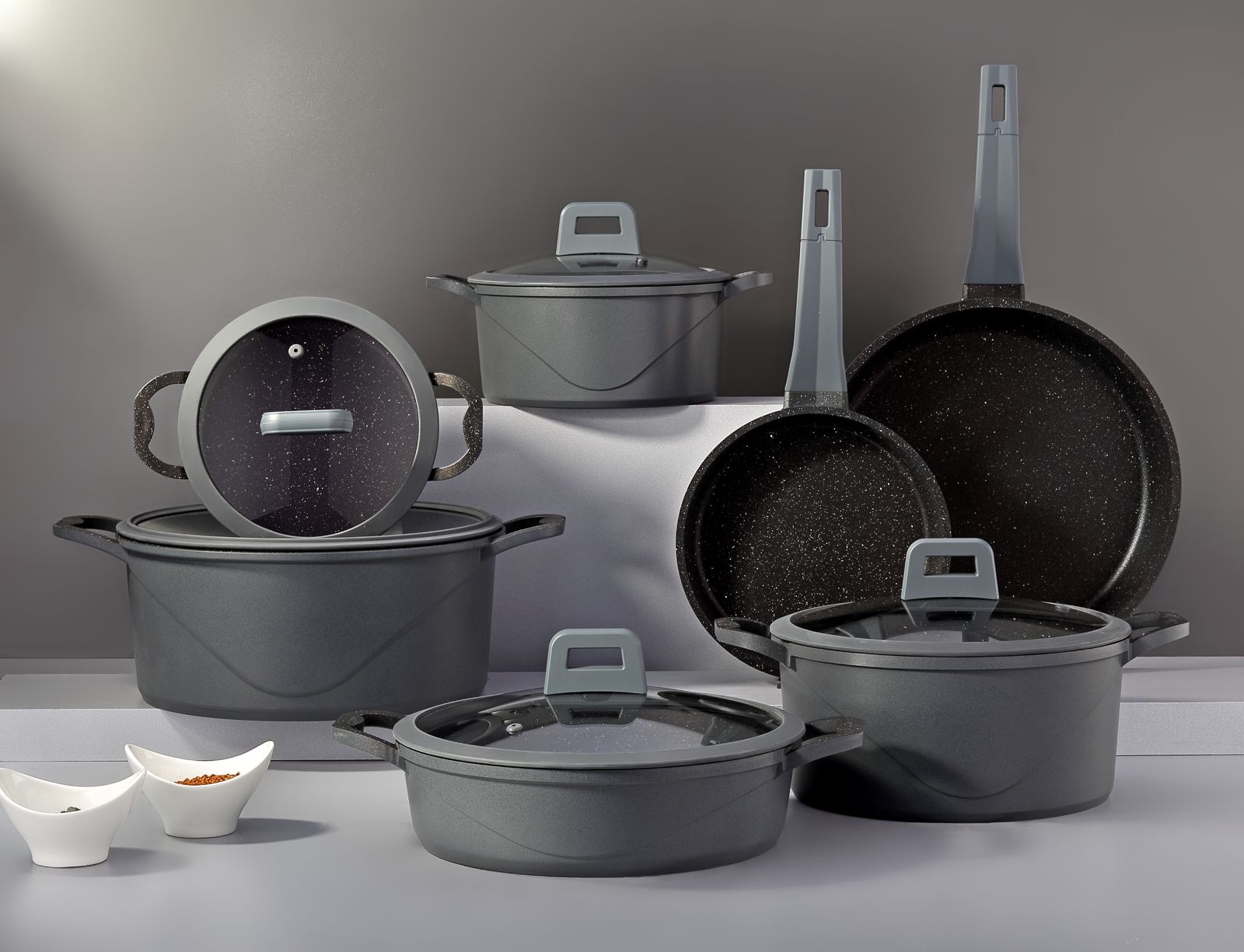 -طقم حلل ومقلايات جرانيت ڤيڤالدي روبي – ١٢ قطعة- جراى