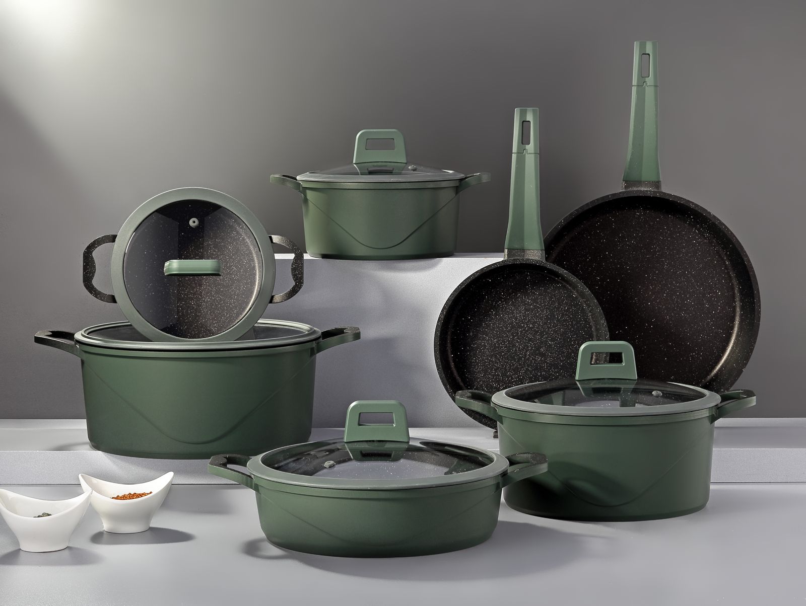 -طقم حلل ومقلايات جرانيت ڤيڤالدي روبي – ١٢ قطعة- اخضر
